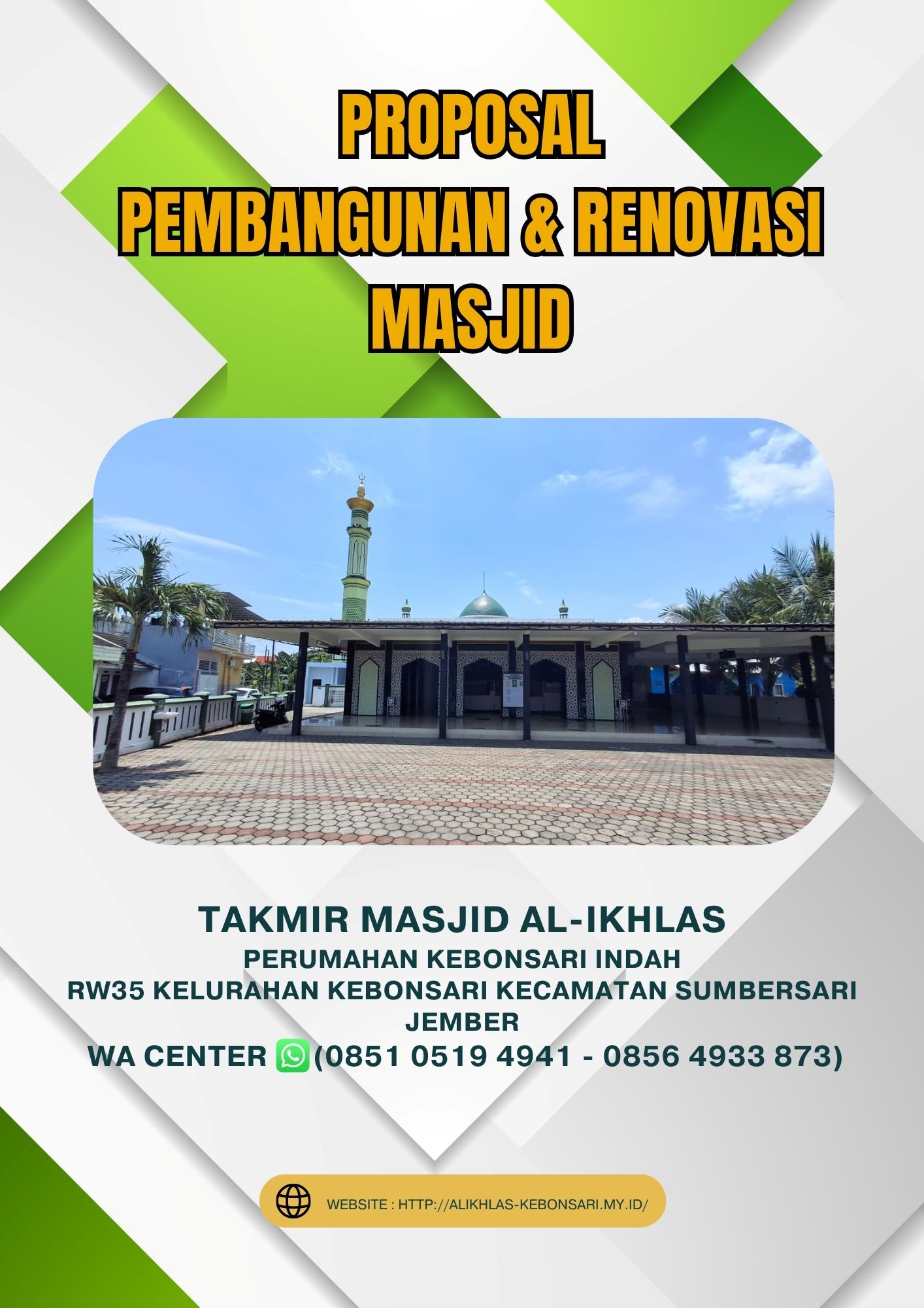 Proposal pembangunan Masjid Al-Ikhlas dapat diunduh melalui tautan di bawah ini